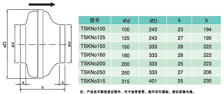 二、 TSK同軸離心管道風(fēng)機(jī)外形尺寸