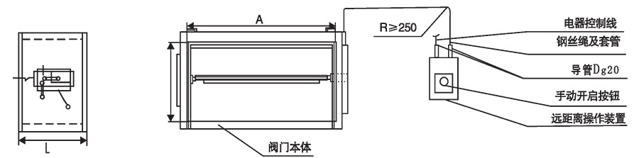 b.排煙閥見簡圖8, 其執(zhí)行機構(gòu)由安裝在附近:墻體上的遠距離控制器通過鋼絲紀與閥體相連,常用于安裝高度較高,以克服手動控制不便之處。