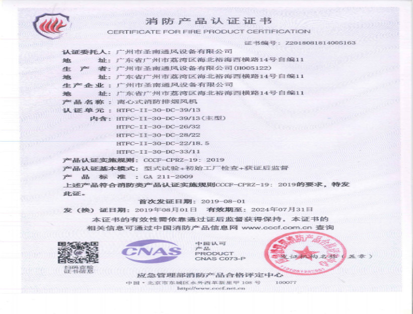 離心式消防排煙風機分型證書(4)