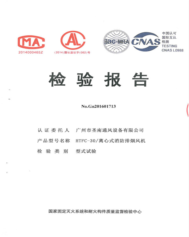 HTFC-33-A 離心式消防排煙風(fēng)機(jī)檢驗報告