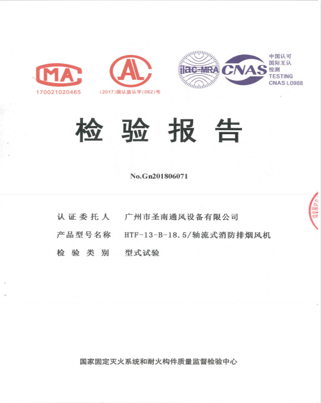 HTF-13-B-18.5 軸流式消防風(fēng)機(jī)檢驗(yàn)報(bào)告