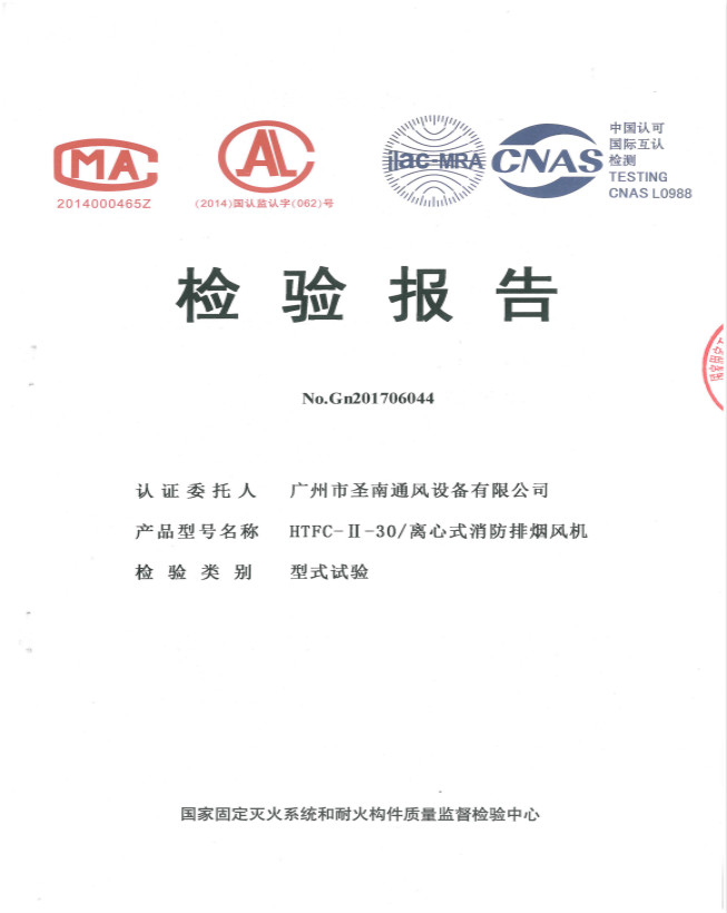 HTFC-II-20-DC-9.5-3.1離心式消防排煙風(fēng)機檢驗報告